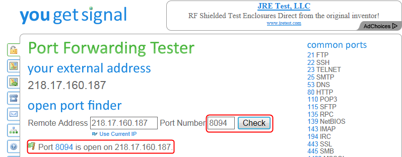 The port is forwarded or not can be test on http://www.yougetsignal.com/tools/open-ports/