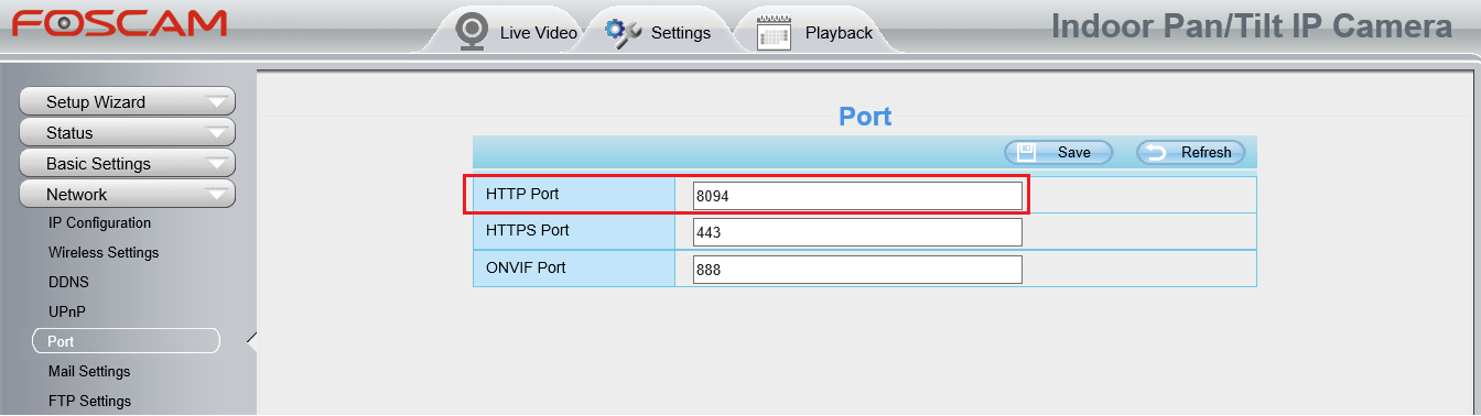 6. Set a http port for your camera.