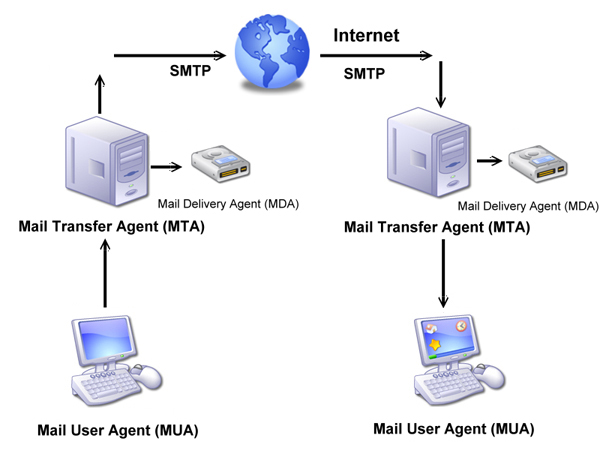 Mail delivery agents (MDA) are used to place messages into a local user's mailbox. When the message arrives at its destination, the final transfer agent gives the message to the appropriate delivery agent, and the latter delivers the message to the user's mailbox.1.4 Simple Mail Transfer Protocol (SMTP)