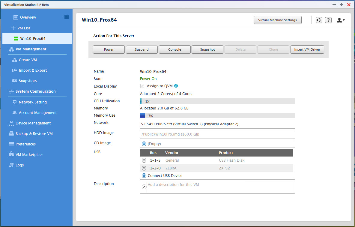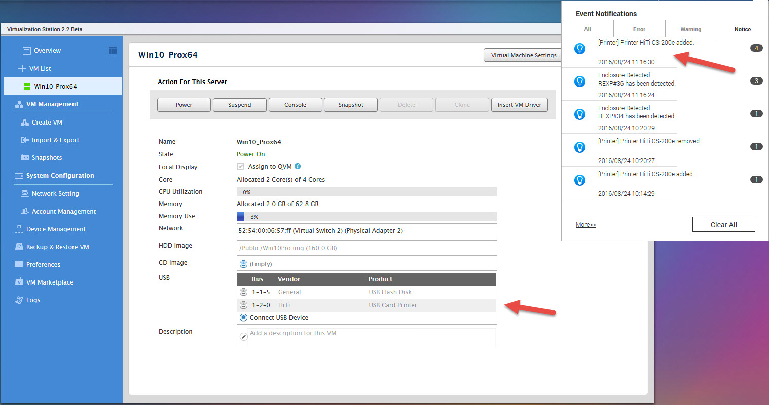 With the setup from Virtualization Station, we are able to print from the Virtual Window OS.