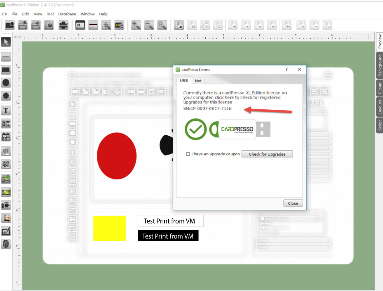 Login to Virtual Window Os, install CardPresso. Software will automatically verity the license through the attached dongle.