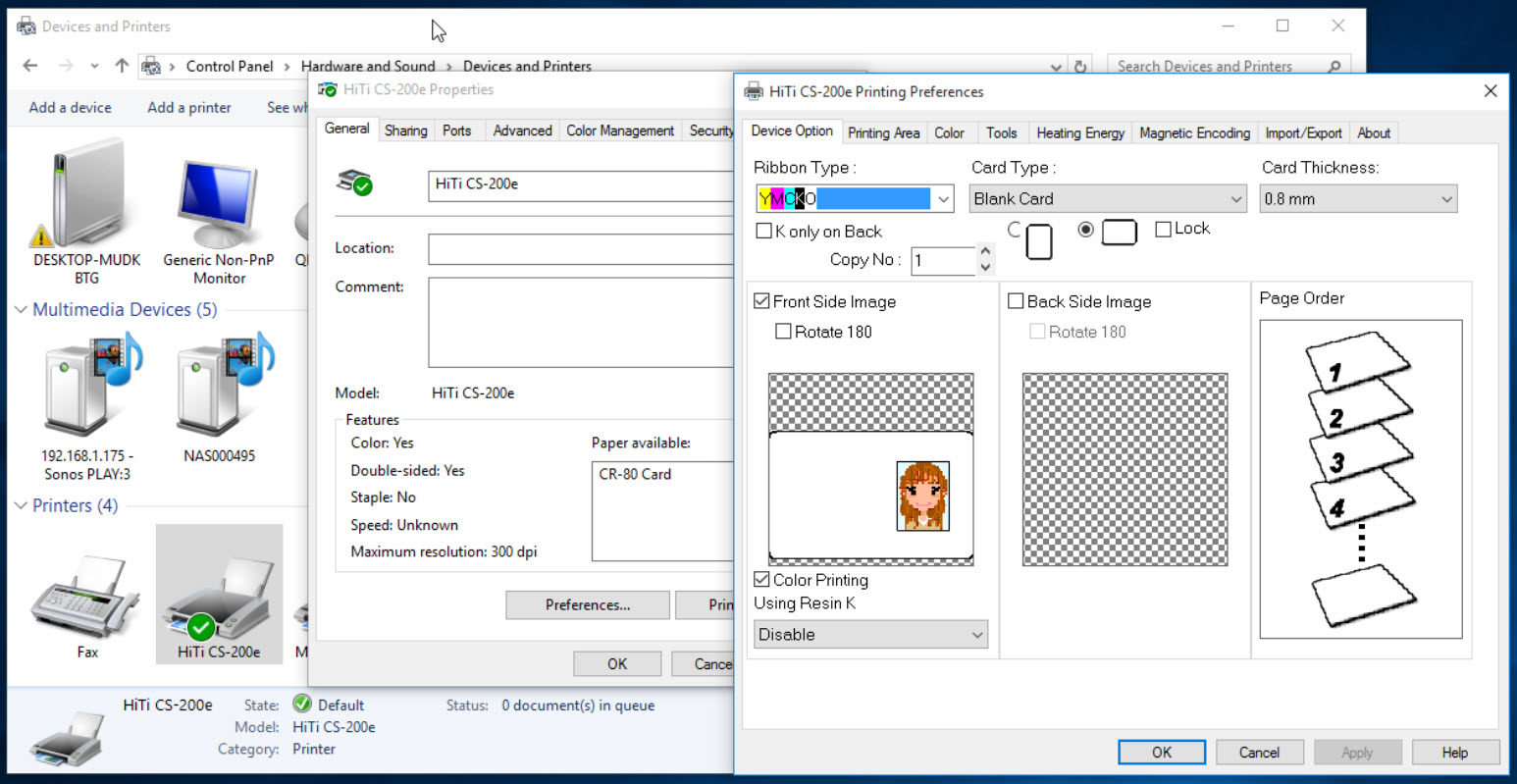 Scenario 1: We are having CardPresso USB dongle with HiTI CS-200e Card Printer., all are connected via USB.