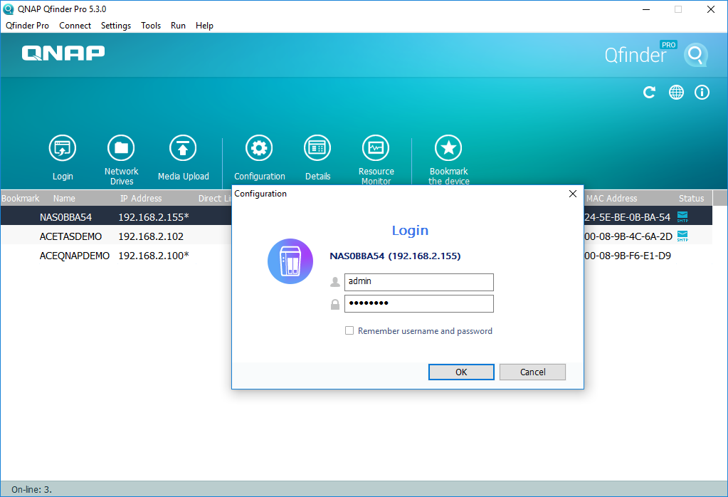 Step 1: Click for the configuration icon at the QNAP Qfinder Pro application