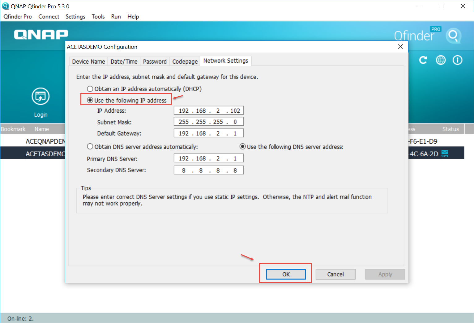 To configure NAS static IP address, please refer to the following steps.