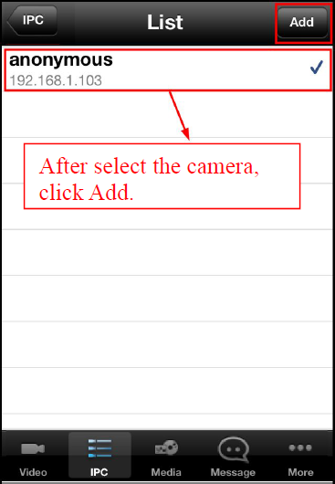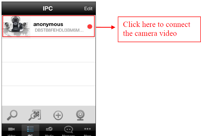 Click IPC back to the IPC list page, tap the camera you want to connect.