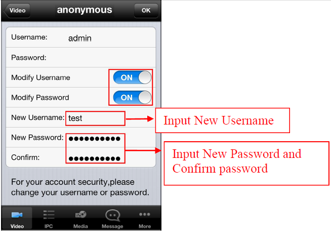 Modify the Username and Password. If you have already modified the Username and Password, you can do not perform this step.